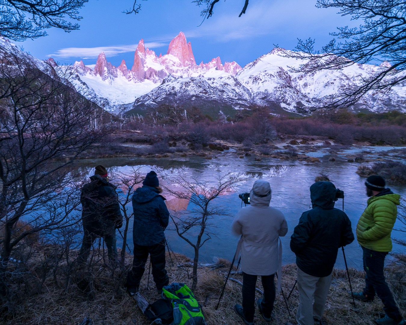 Yo, Matías Villegas, estaré a cargo de la guía fotográfica durante todo el viaje. Cuento con innumerables visitas a la Patagonia y a El Chaltén en distintas épocas del año, lo que me permite conocer en profundidad los senderos, los puntos fotográficos más interesantes y las mejores horas de luz. Además, nos acompaña un guía local certificado, con amplia experiencia en trekking y alta montaña, y conocimientos de fotografía, un gran valor al momento de movernos, esperar la luz y tomar decisiones en terreno.
