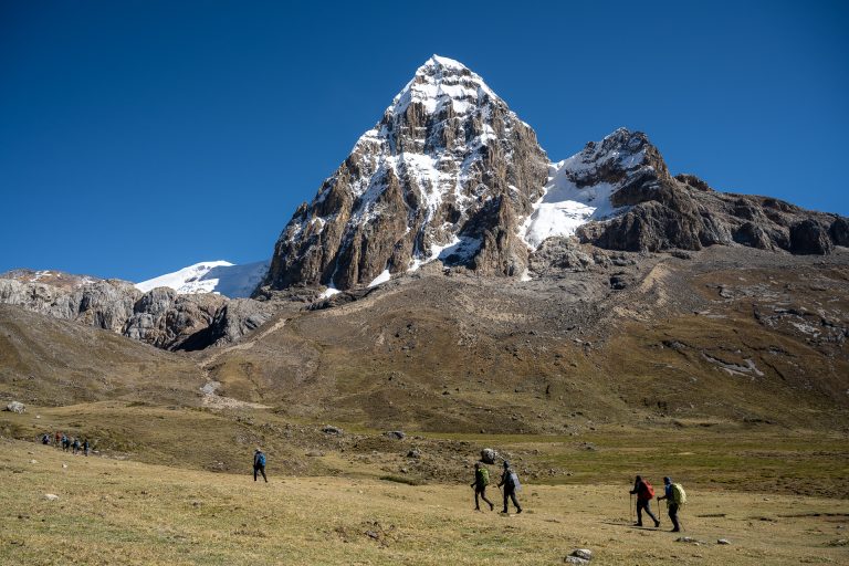 La Cordillera Huayhuash es remota, y por eso trabajamos únicamente con equipos que conocen cada valle, cada salida posible y cada alternativa realista para operar con seguridad.